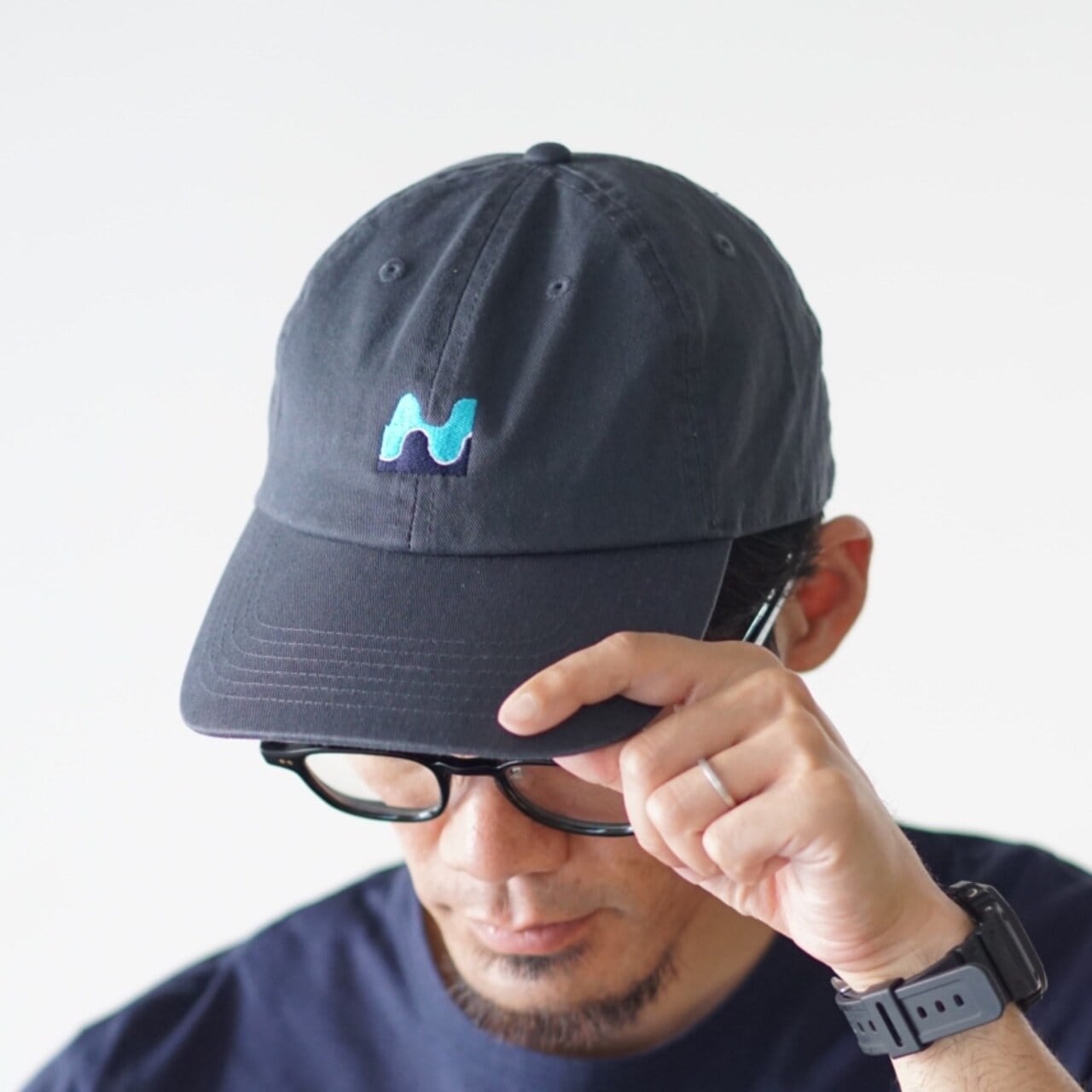 シンプルなキャップに、さりげなく存在感を与える刺繍。