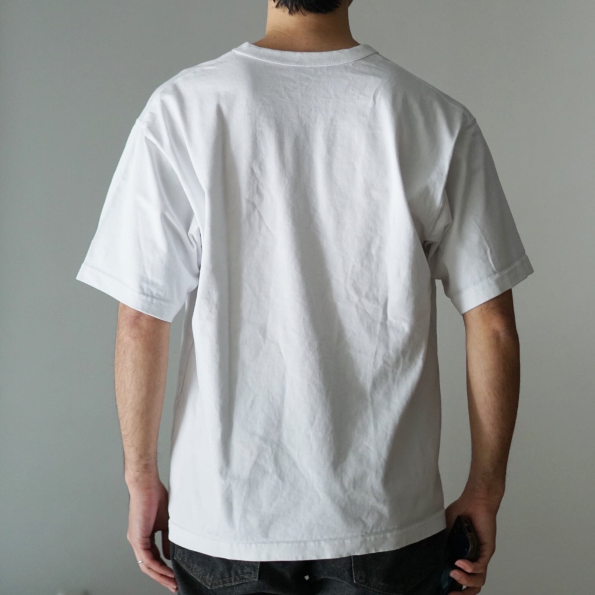 「厚手=無骨」というイメージを覆すため、表面に酵素加工が施されています。北米屈指のカットソー産地であるカナダの老舗工場で編み立てられた、ヘビーウェイト特有のゴワつきや毛羽立ちを抑えた、滑らかで上品な質感が特徴です。白Tならではのクリーンな表情を、より長く、より美しく保ちます。
